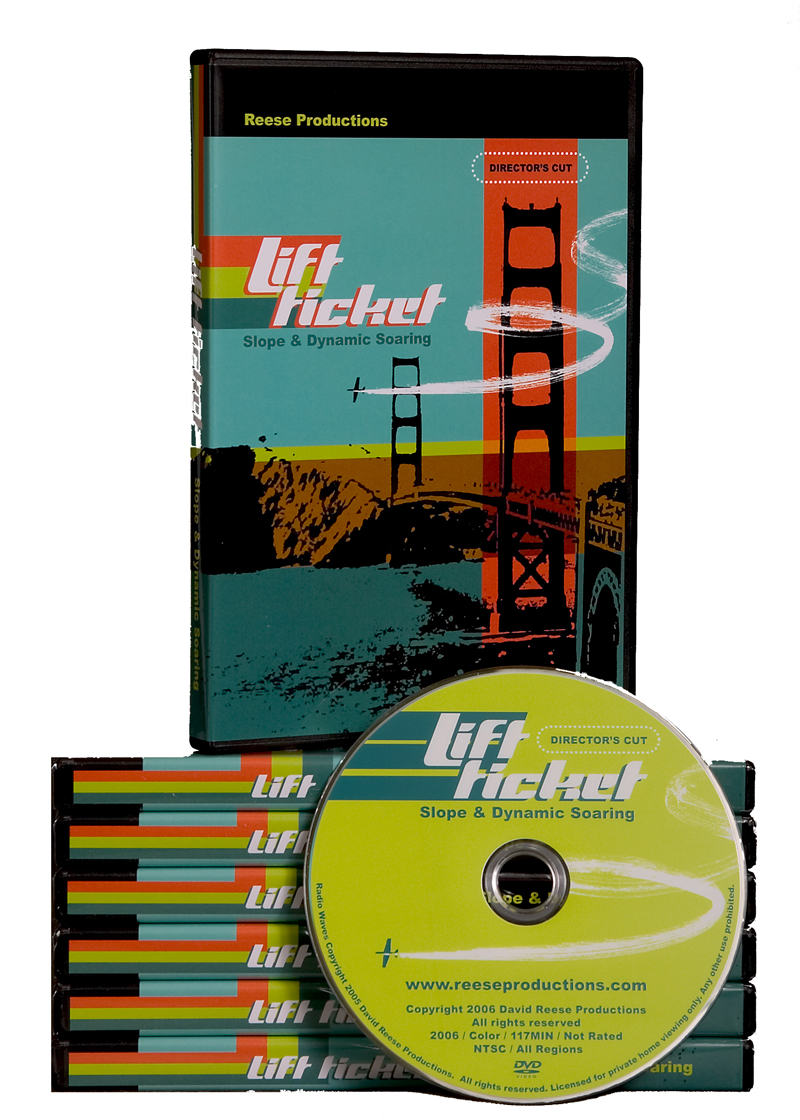 From the opening scene of Scott Hewett flying his smoking F-20 in front of the Golden Gate Bridge to the final scene of Kyle Paulson dynamic soaring his 100" Exxtreme to over 300 mph, you are saturated for almost two full hours with some of the best slope and dynamic soaring footage ever presented in a movie about RC Soaring. Lift Ticket ,The Director's Cut is an incredible barrage of audio-visual stimulus that is guaranteed to inspire you to get out and fly.