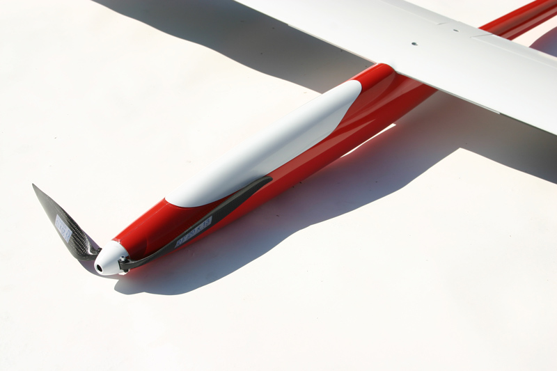 The wing is incredibly stiff with a thick carbon spar and carbon/glass/kevlar skin construction. The 4 flap sections extend to the outer panel, and require 4 servos. These surfaces in combination with spoilers makes a very effective airbrake system for landing.