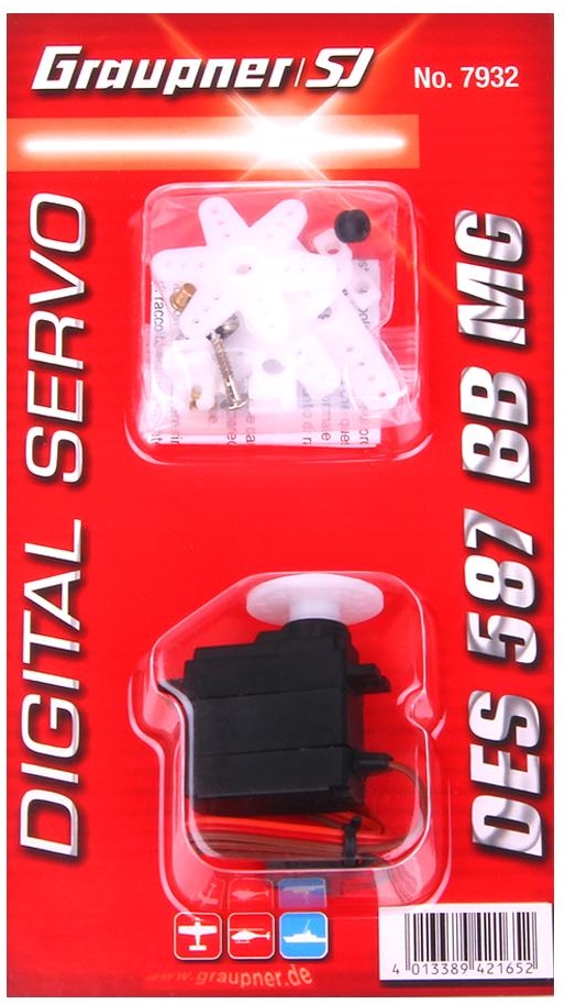 One of the most popular mini servos, DES 587 BB MG offers excellent centering, resolution and durability for those looking to save weight without sacrificing performance. Featuring heavy duty metal gear and exclusive digital programmable circuit providing constant torque and holding power, DES 587 BB MG offers a fine balance between speed and torque.