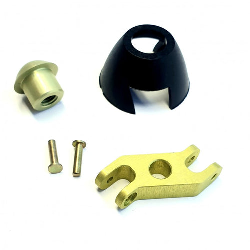 Light and strong, the CN F5K spinners are designed for motors with 3mm shafts. The special shape of the hub will allow for optimal folding of the blades closer to the fuselage for drag reduction when gliding. You'll get the best prop fit by using CN's spread tow propellors that are designed for their hubs. The hub and collet are made by CNC milling aluminum that is then anodized. The split collet reduces vibration and can be used on motor shafts without machined flats. The shockproof cone is cast in a glass-nylon composite.